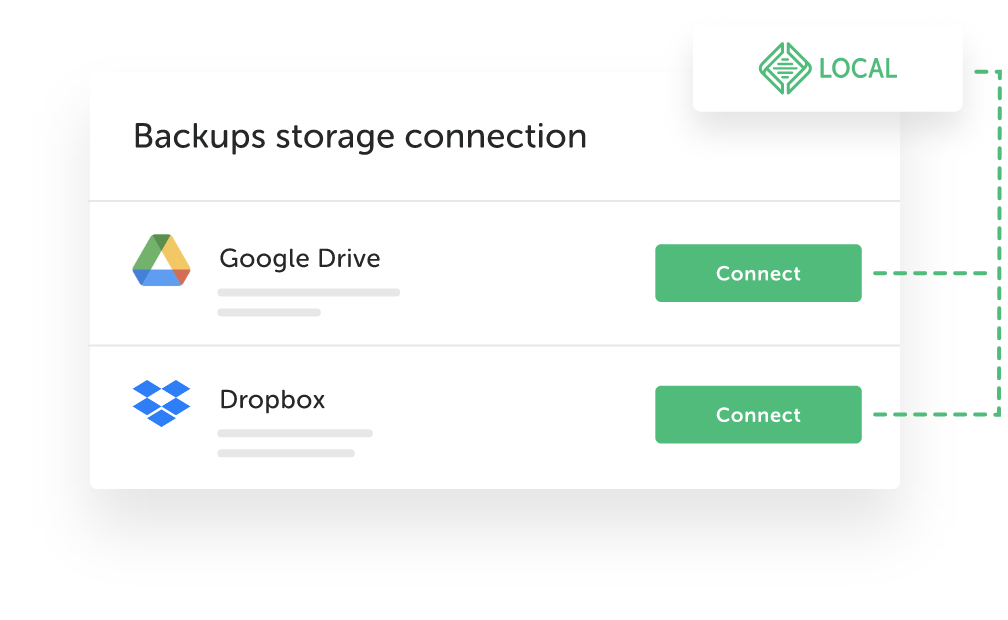 Cloud Backups uses your Local account to connect to your existing cloud storage provider such as Dropbox or Google Drive.